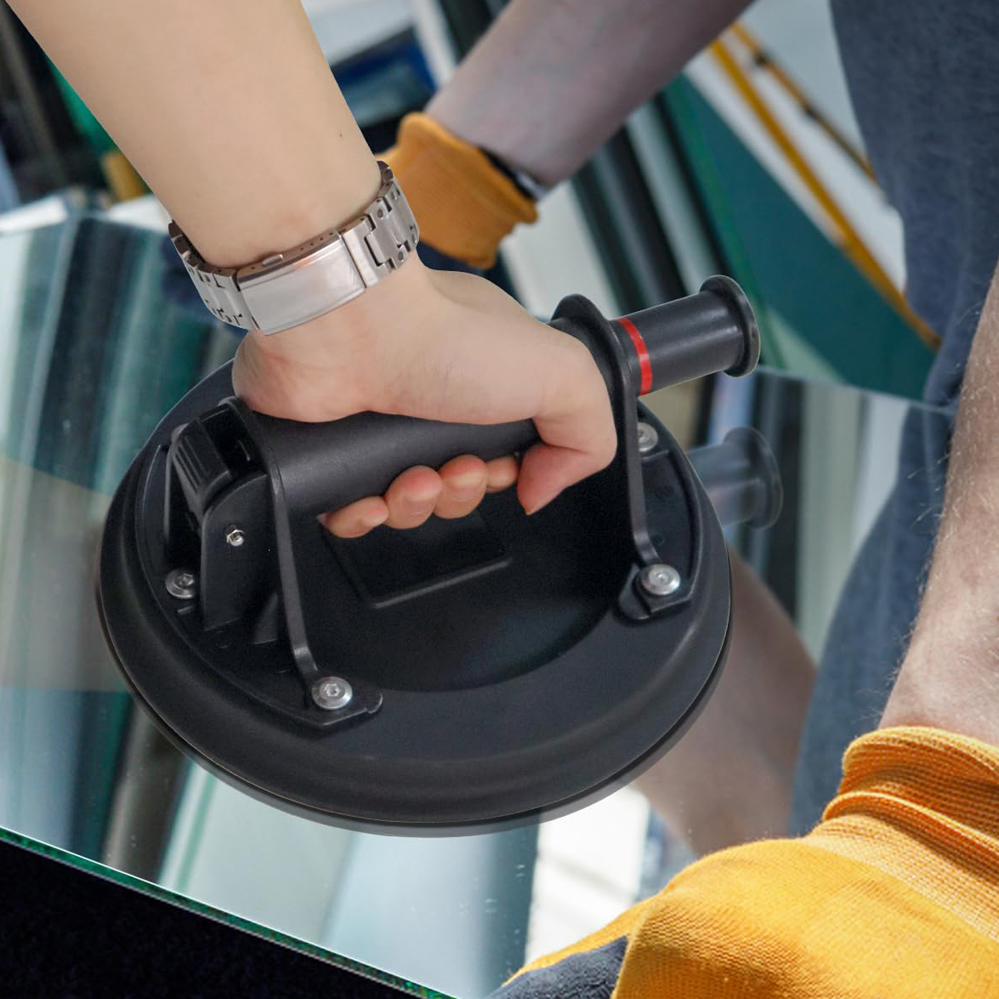 Kapëse vakumi manuale për ngritjen dhe vendosjen e pllakave, xhamit dhe sipërfaqeve të sheshta, e fortë dhe e lehtë për përdorim.