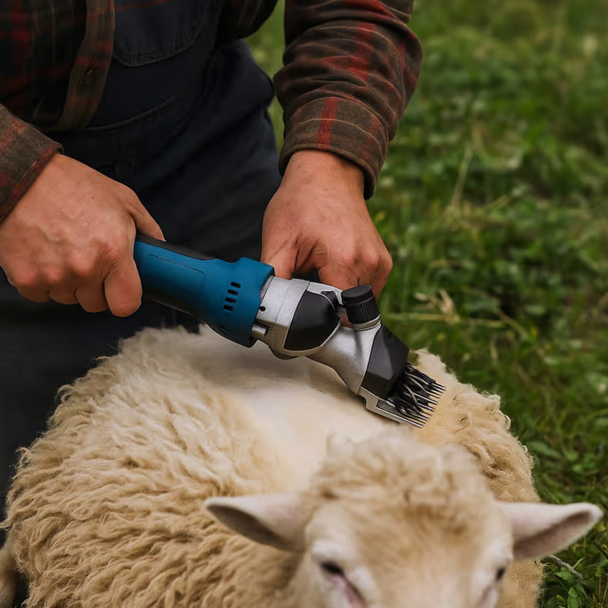 Makinë profesionale pa kabllo për qethjen e deleve, me bateri të rikarikueshme dhe valixhe transporti, ideale për punë praktike në fermë.