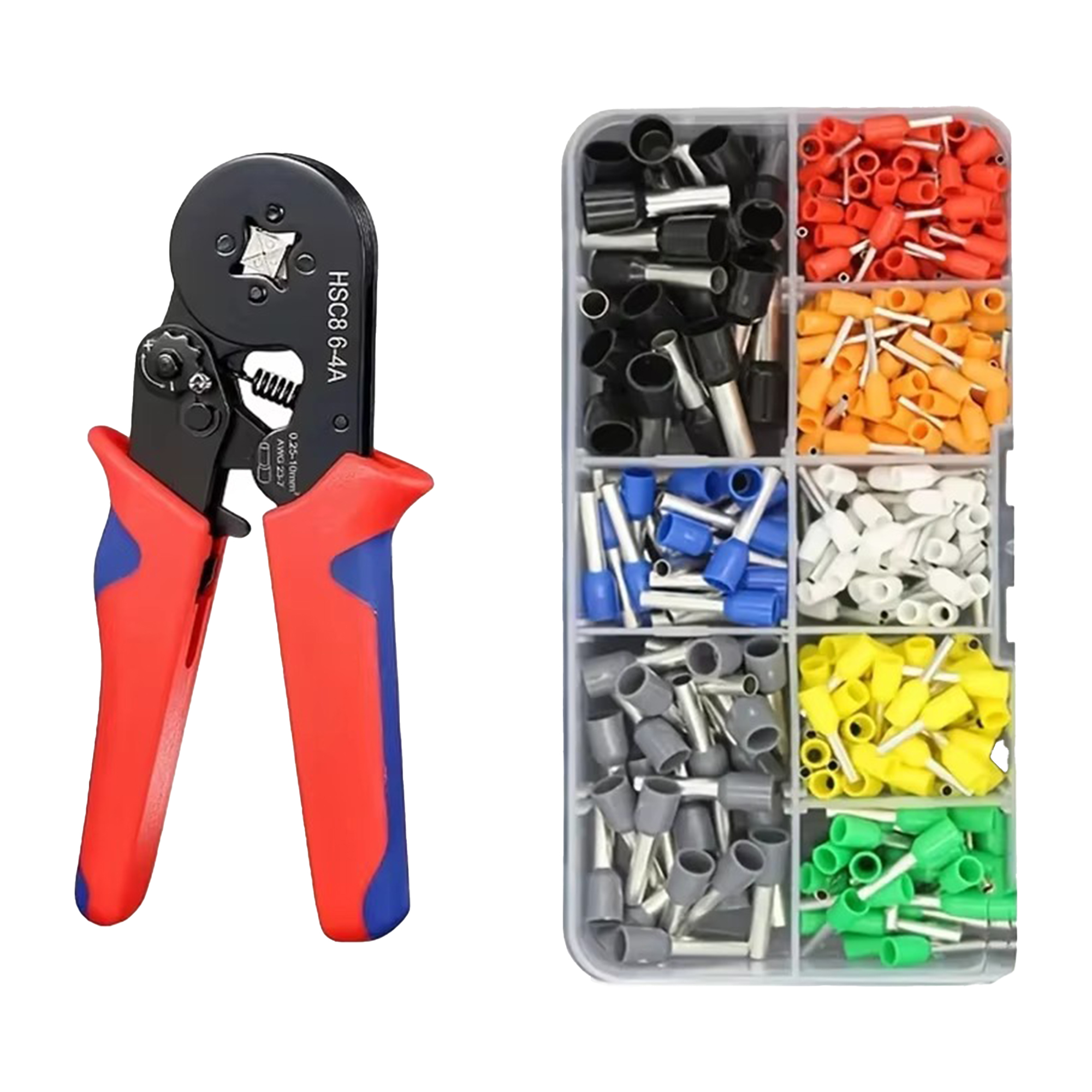 Pincë profesionale për krimpim kabllosh elektrike, e shoqëruar me set prej 400 kapësesh të izoluara në madhësi të ndryshme. Ideale për punime elektrike, instalime dhe riparime precize.