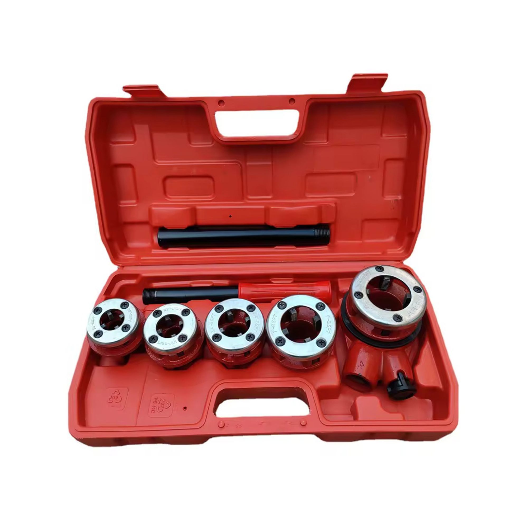 Set profesional për krijimin e filetove në tuba hekuri, i përshtatshëm për punime hidraulike dhe instalime metalike.
